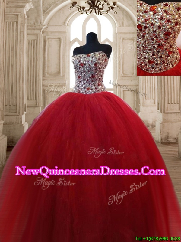 Hot Sale Beaded Bodice Sweet 16 Dress in Wine Red