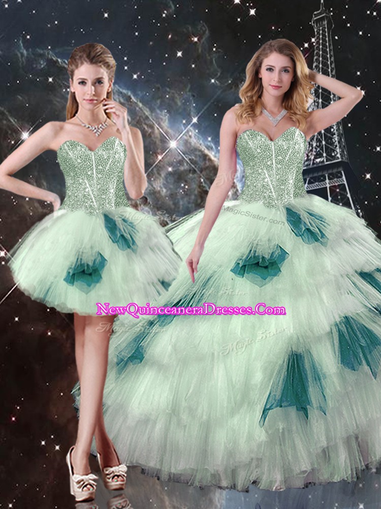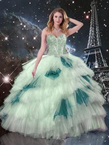 Multi-color Lace Up Sweet 16 Dresses Beading and Ruffled Layers Sleeveless Floor Length