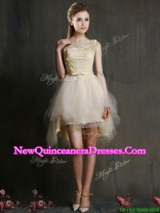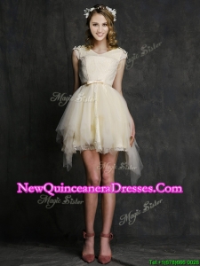 , Hot Sale Mini Length Tulle Dama Dress with Belt