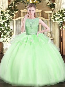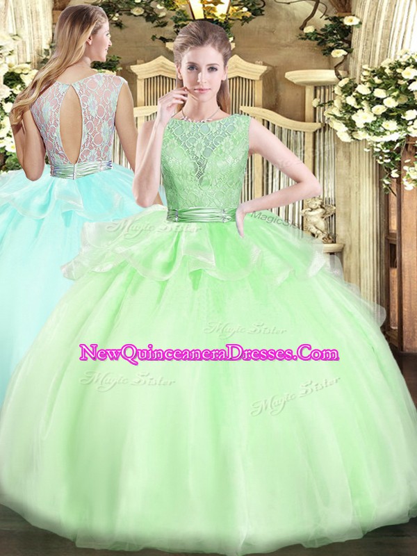 Hot Sale Scoop Sleeveless Backless Quince Ball Gowns Organza
