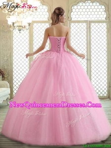 Hot Sale Sweetheart Rose Pink Quinceanera Dresses with Beading for 2016
