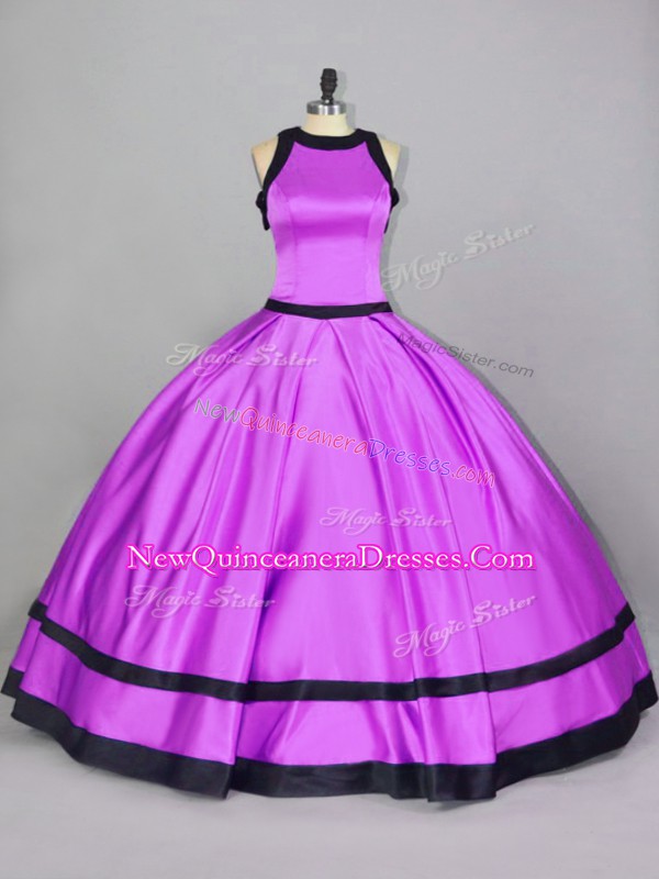 Ideal Floor Length Lilac Quinceanera Dress Scoop Sleeveless Zipper