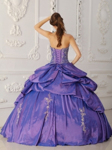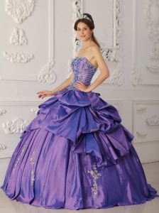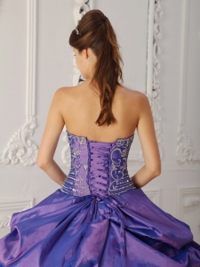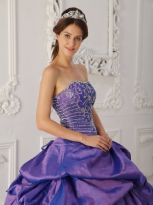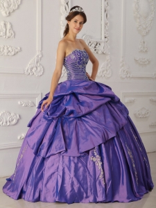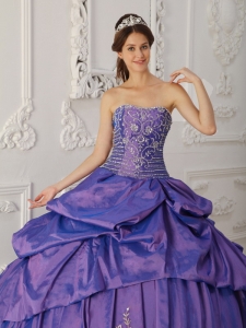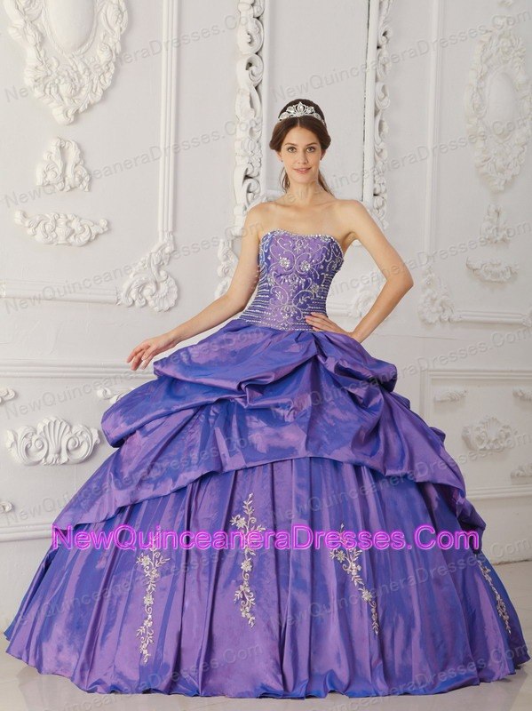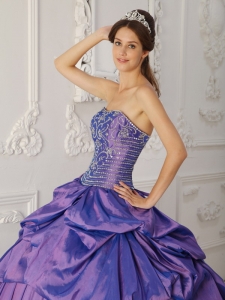 Elegant Purple Quinceanera Dress Strapless Taffeta Embroidery and Beading Ball Gown