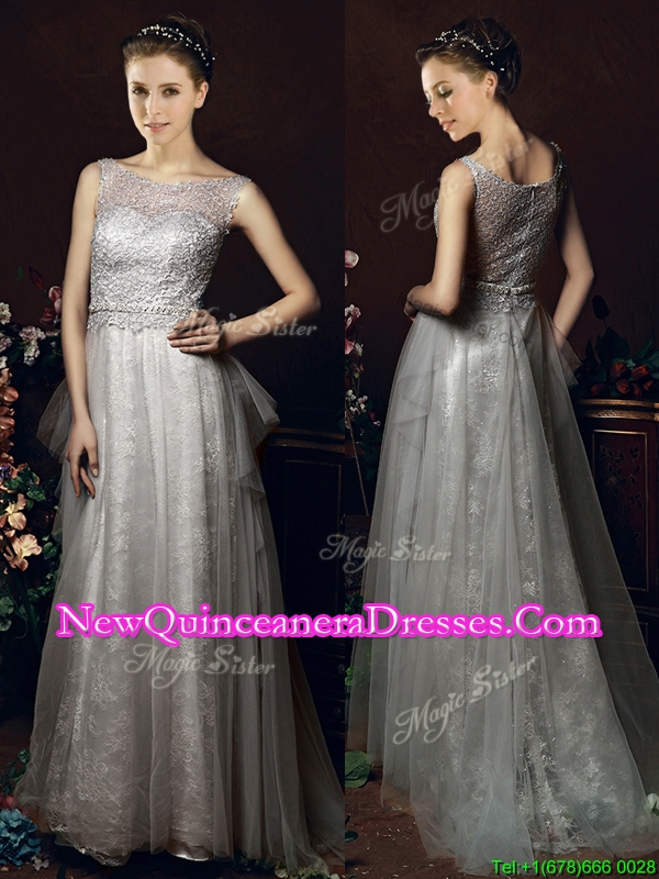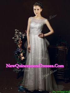 Popular Belted Empire Scoop Red Damas Dress with Brush Train