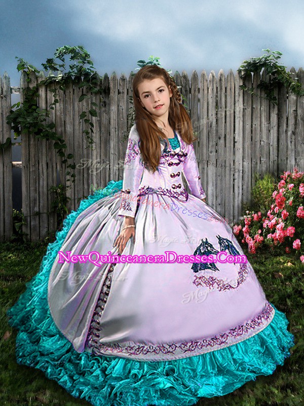 Latest White Straps Neckline Embroidery and Ruffles Kids Formal Wear Sleeveless Lace Up