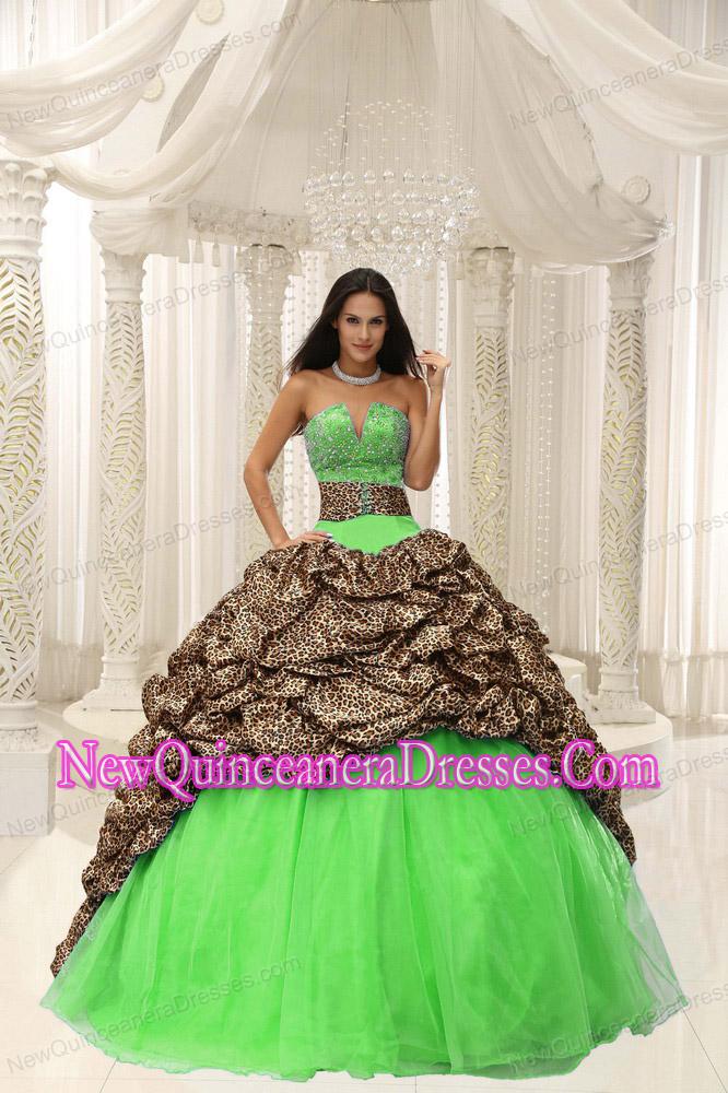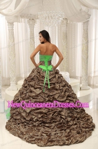 Leopard and Organza Beading Decorate Sweetheart Neckline Puffy Sweet 16 Gowns