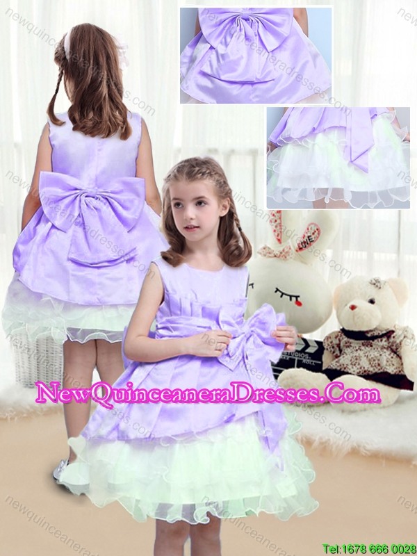 Beautiful A Line Scoop Mini Length Bowknot Cute Little Girl Pageant Dresses in Multi Color