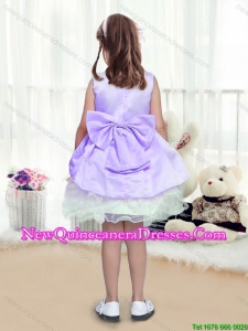 Lovely A Line Scoop Mini Length Cute Little Girl Pageant Dresses with Bowknot