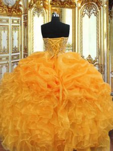 Lovely Orange Organza Lace Up Sweetheart Sleeveless Floor Length Sweet 16 Dress Beading and Ruffles