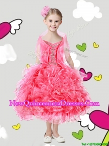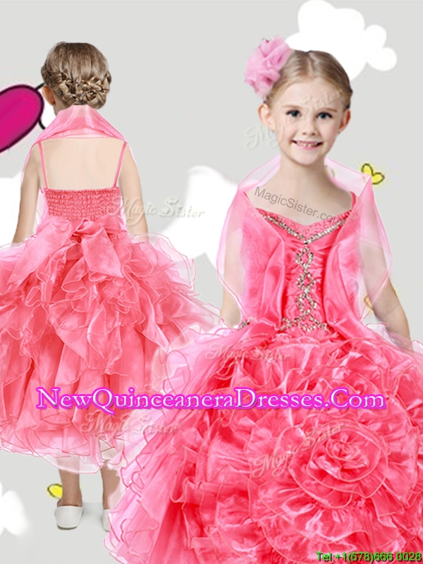 Lovely Spaghetti Straps Little Girl Pageant Dress with Beading and Rolling Flowers