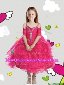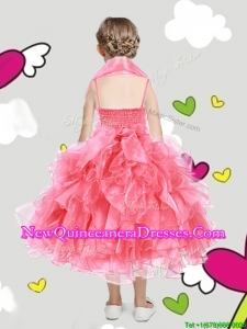 Best Beaded and Ruffled Halter Top Little Girl Pageant Dress in Tea Length