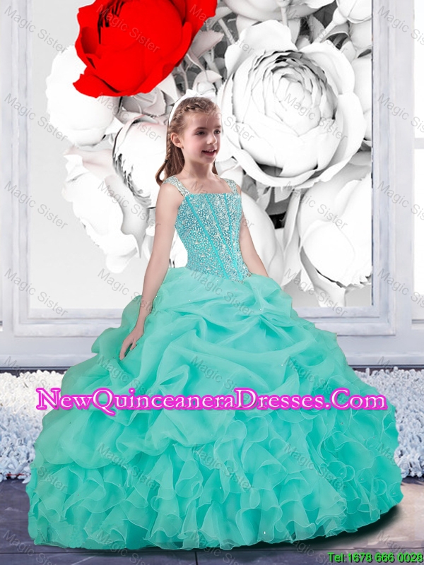 Lovely Straps Turquoise Organza Mini Quinceanera Dresses for 2016