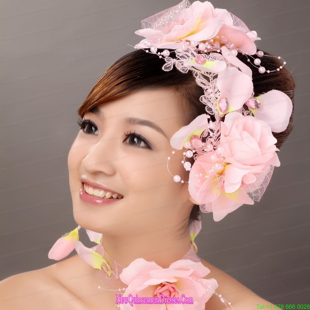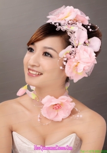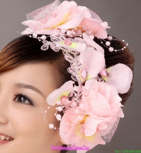 Fashionable Light Pink Tulle Hand Made Flowers Beading Fascinators For Party