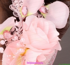 Light Pink Fashionable Tulle Feather Hand Made Flowers Beading Fascinators