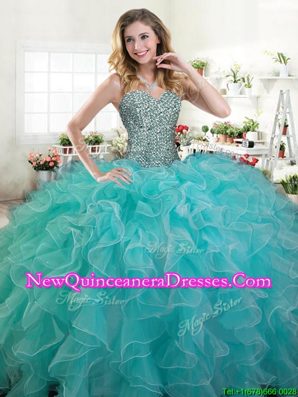 Lovely Turquoise Organza Quinceanera Dress with Beading and Ruffles
