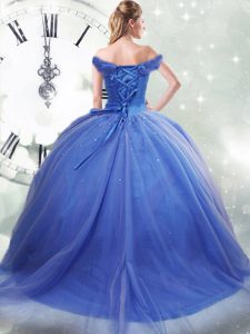 Luxurious Light Blue Sweet 16 Quinceanera Dress Tulle Brush Train Sleeveless Pick Ups