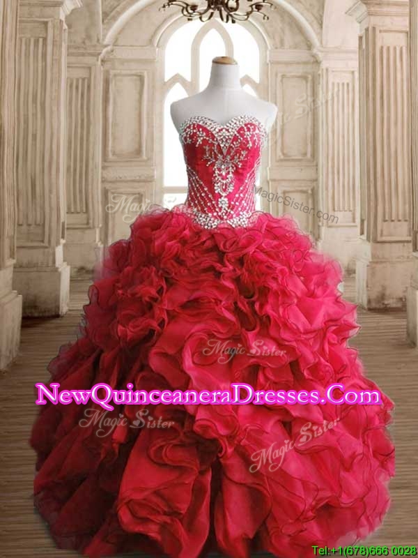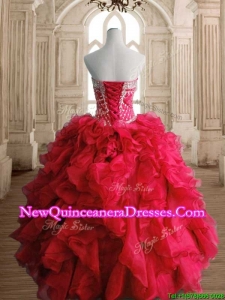 Luxurious Red Big Puffy Sweet 16 Dress with Beading and Ruffles