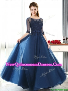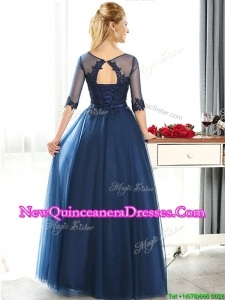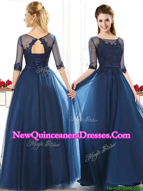 Luxurious See Through Scoop Half Sleeves Dama Dress with Lace and Belt