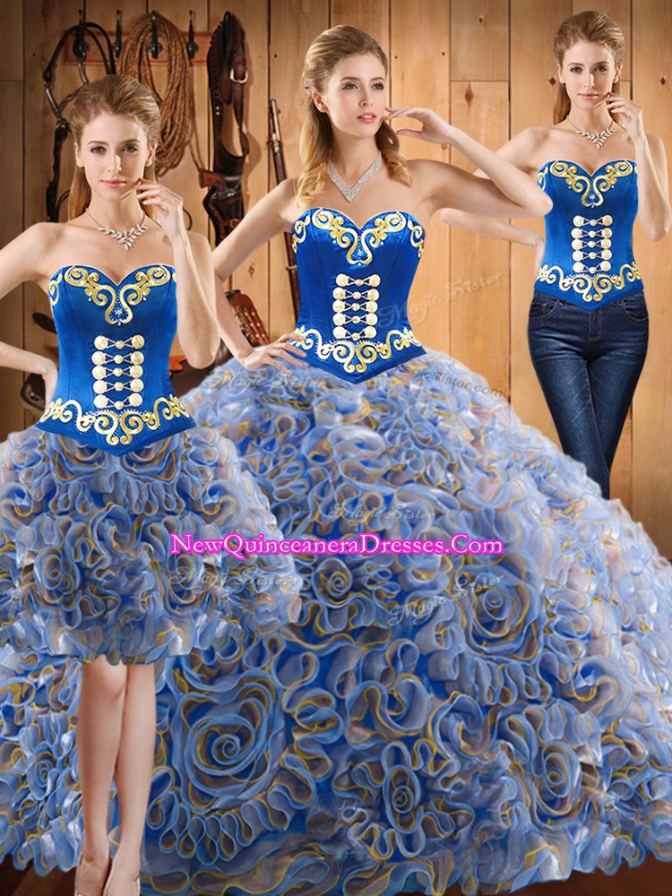 Luxury Multi-color Sweet 16 Dress Military Ball and Sweet 16 and Quinceanera with Embroidery Strapless Sleeveless Sweep Train Lace Up