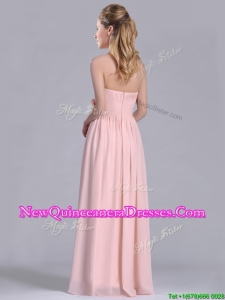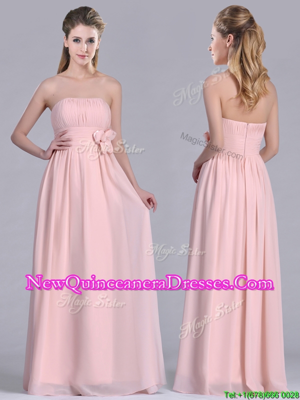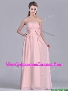 Modern Chiffon Handcrafted Flowers Long Dama Dress in Baby Pink