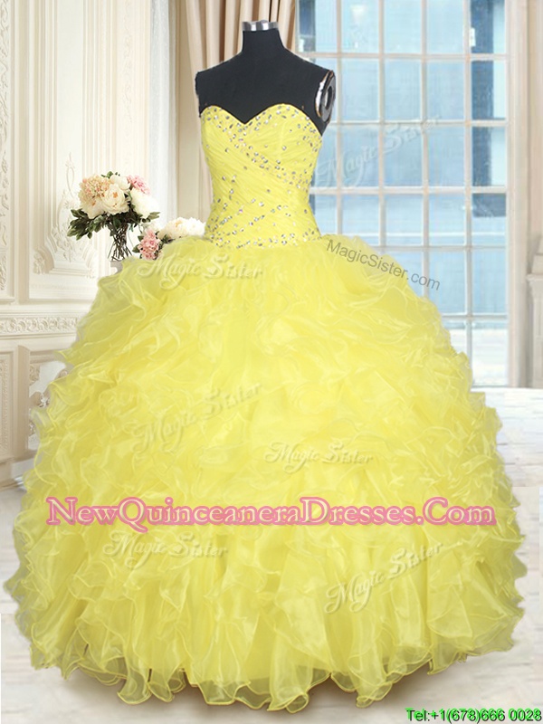 Modern Sweetheart Sleeveless Organza Quinceanera Dress Beading and Ruffles Lace Up