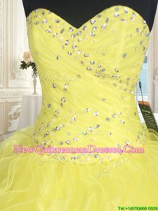 Sophisticated Sweetheart Sleeveless Organza Ball Gown Prom Dress Beading and Ruffles Lace Up