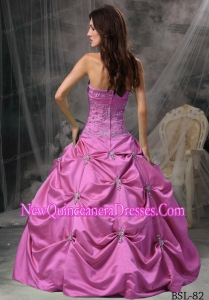 fashionable satin sweet 15 dress with embroidery in rose pink,