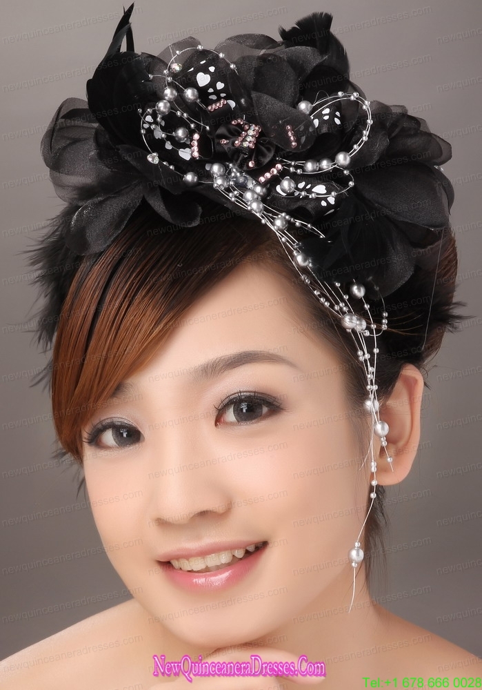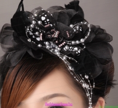 Modest Black Organza Beading Women s Fascinators