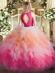 Modest Sleeveless Organza Floor Length Zipper Sweet 16 Dresses in Multi-color with Ruffles