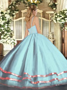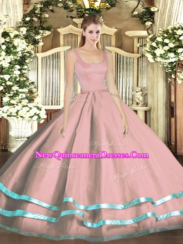 Modest Straps Sleeveless Vestidos de Quinceanera Floor Length Ruffled Layers Pink Tulle