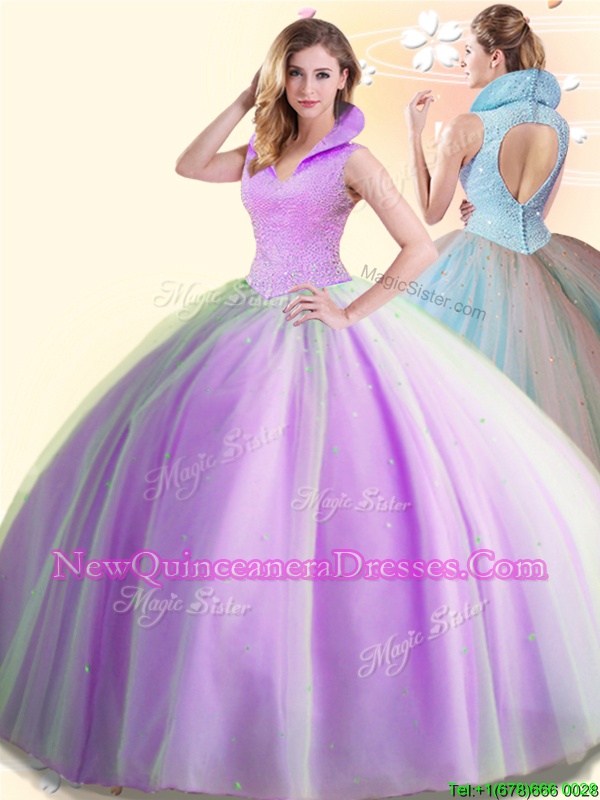 Most Popular Floor Length Ball Gowns Sleeveless Lilac Sweet 16 Dresses Backless