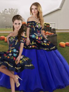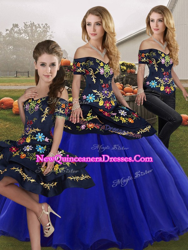 Most Popular Floor Length Lace Up 15th Birthday Dress Royal Blue for Military Ball and Sweet 16 and Quinceanera with Embroidery
