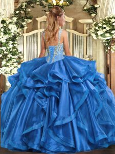 Perfect Sweetheart Sleeveless Organza 15th Birthday Dress Appliques and Ruffles Lace Up