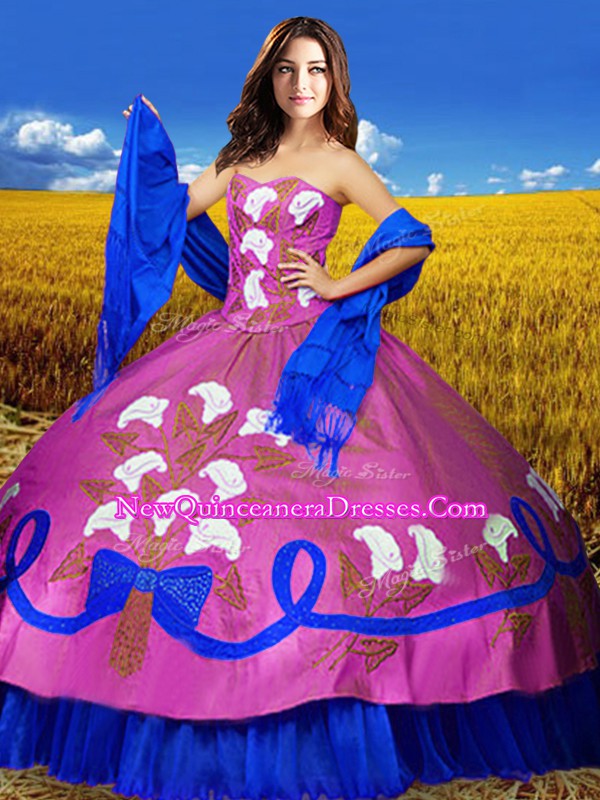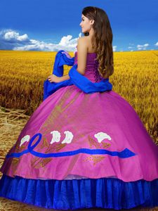 Most Popular Multi-color Quinceanera Dress Military Ball and Sweet 16 and Quinceanera with Embroidery Sweetheart Sleeveless Lace Up