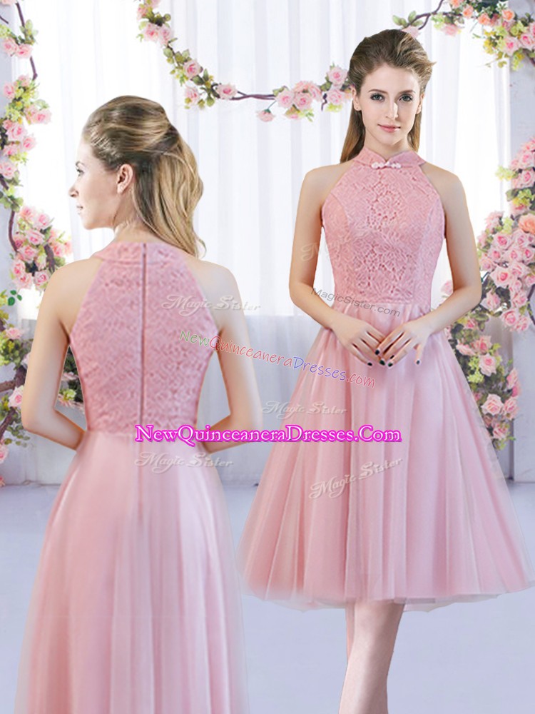 Most Popular Pink Sleeveless Tulle Zipper Quinceanera Court Dresses for Wedding Party
