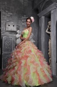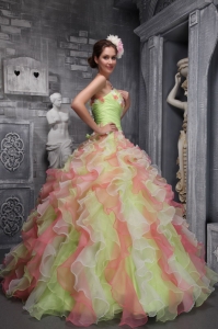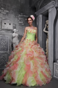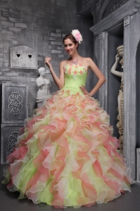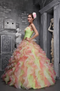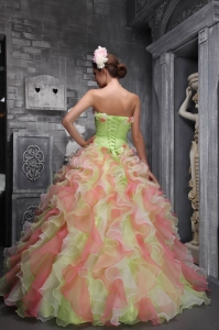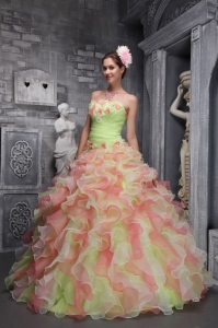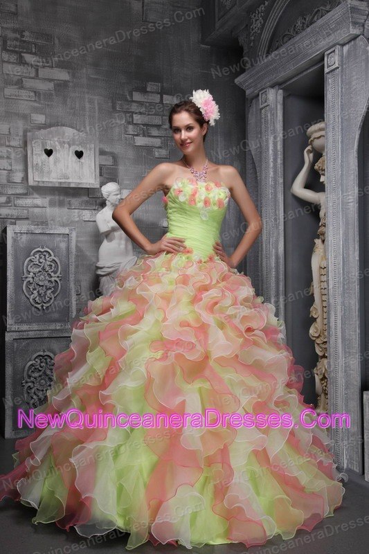 Lovely Multi-color Sweet 16 Dress Strapless Taffeta and Organza Hand Flowers Ball Gown