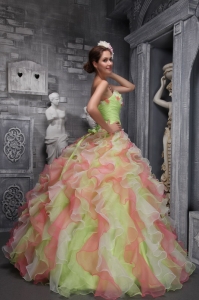 Sweet, romantic dresses never go out of style and are perfect for any occasion. The most prominent feature of this dress is that it is adorned by two colors,which seems a dream. It is characterized by a strapless bodice with diffrent colors of layers on it.You've never seen a quinceanera dress as lovely as this one before! Layers in different colors make the skirt fascinate. You will earn thousands of spotlight at the party in this dress.
