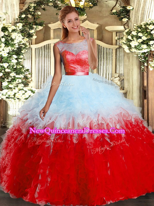 Multi-color Scoop Backless Beading and Ruffles Sweet 16 Dress Sleeveless