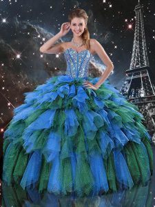 Multi-color Sweetheart Lace Up Beading and Ruffles and Ruffled Layers Quinceanera Dress Sleeveless