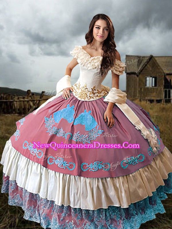 Multi-color Vestidos de Quinceanera Off The Shoulder Sleeveless Brush Train Lace Up