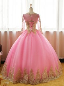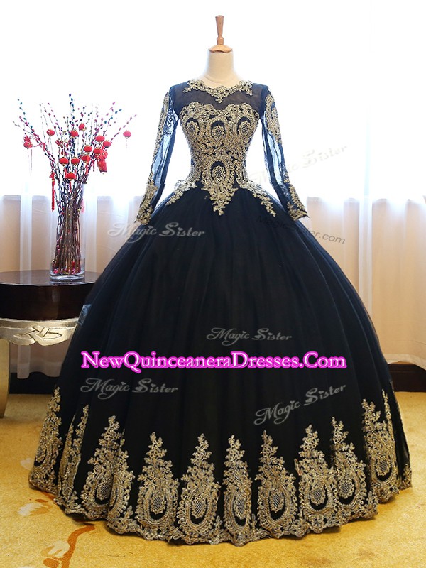 Navy Blue 15th Birthday Dress Sweet 16 and Quinceanera with Appliques Scoop Long Sleeves Lace Up