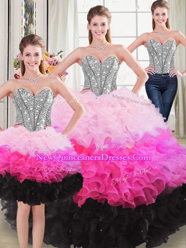New Arrival Floor Length Multi-color Quinceanera Gowns Organza Sleeveless Beading and Ruffles