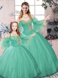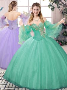 Artistic V-neck Sleeveless Tulle Court Dresses for Sweet 16 Appliques and Belt Lace Up