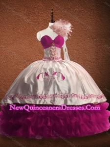 Customized Fuchsia and White Custom Made Quinceanera Dress with Ruffled Layers and Patter