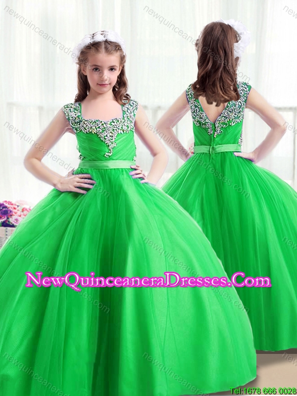 New Arrivals Square Green 2016 Little Girl Pageant Dresses with Beading