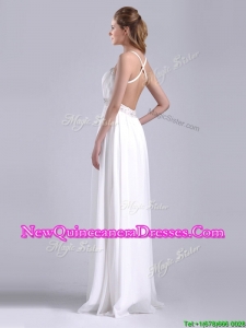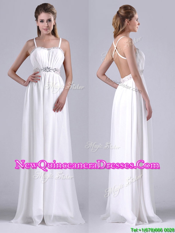 New Style Beaded Top and Waist White Dama Dress with Criss Cross