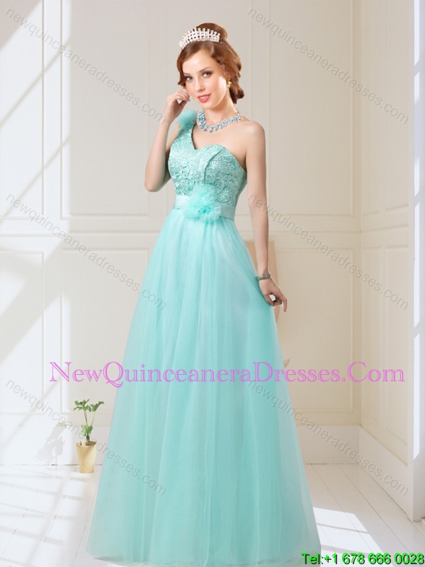 New Style Empire Lace Up Hand Made Flowers Dama Dresses in Mint