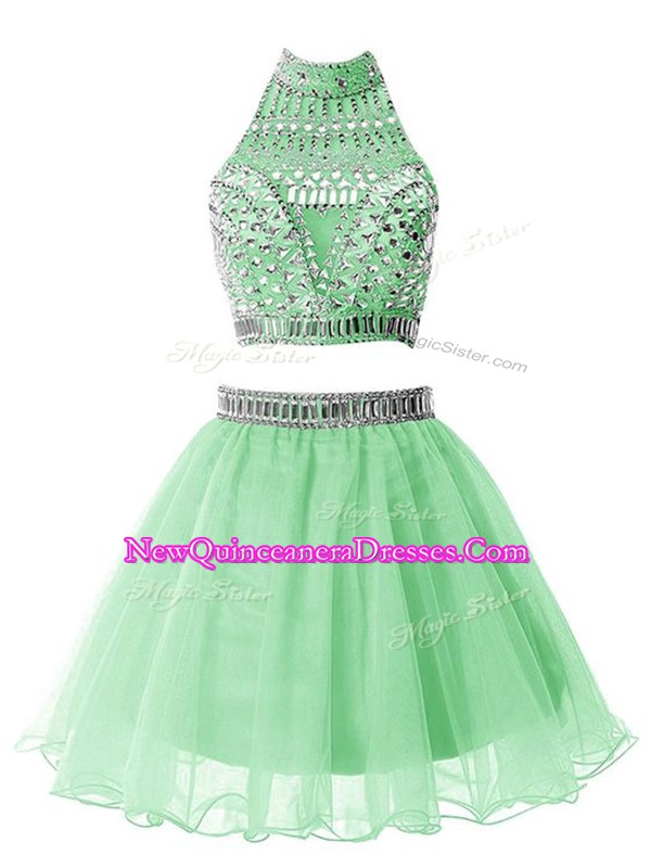 New Style Halter Top Sleeveless Organza Vestidos de Damas Beading Zipper