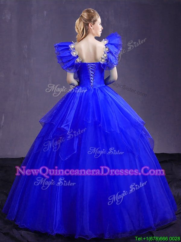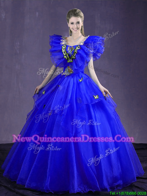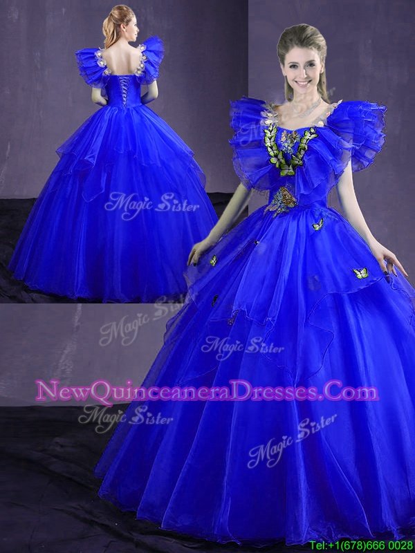 New Style Royal Blue Sleeveless Organza Lace Up Quinceanera Dress for Military Ball and Sweet 16 and Quinceanera