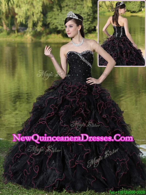 New Style Ruffles Layered and Beading Quinceanera Gowns in Black